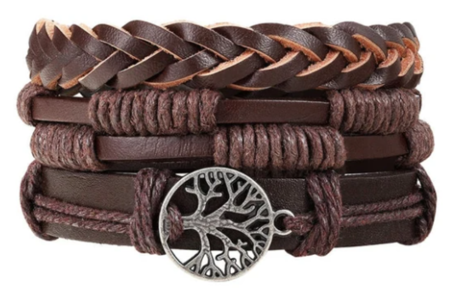 سوار من الجلد بسلسلة من الصلب والتيتانيوم المنسوج يدويًا
