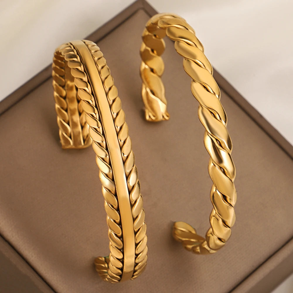 سوار سلسلة الارتباط الكبير من الذهب والفضة
