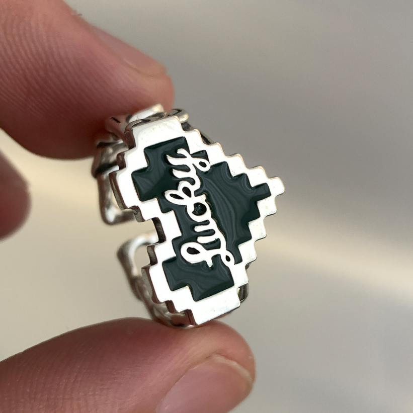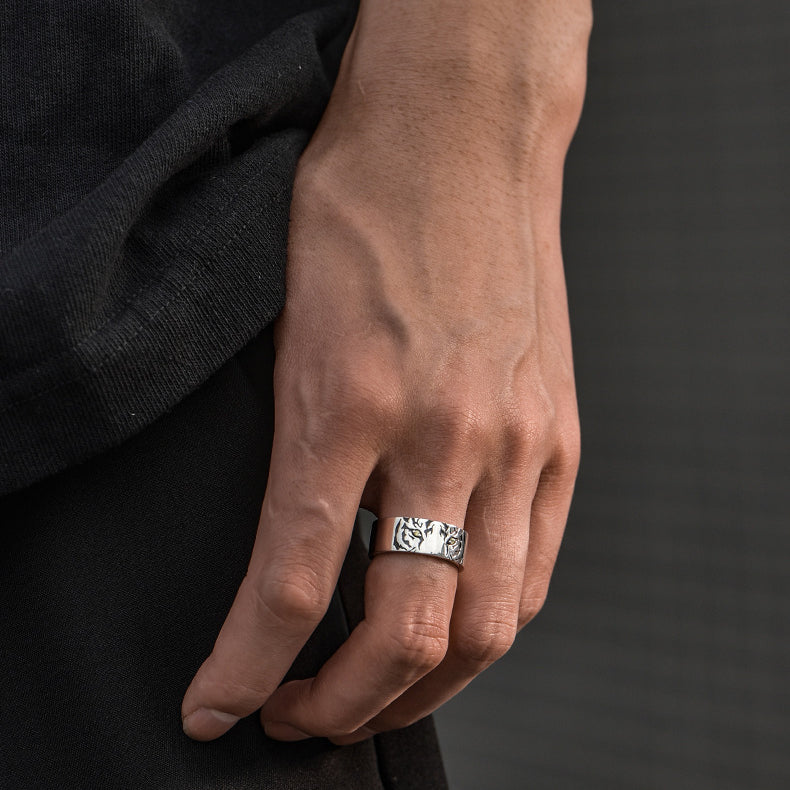 منقوشة Graving الأسود جوهرة خاتم قابل للتعديل