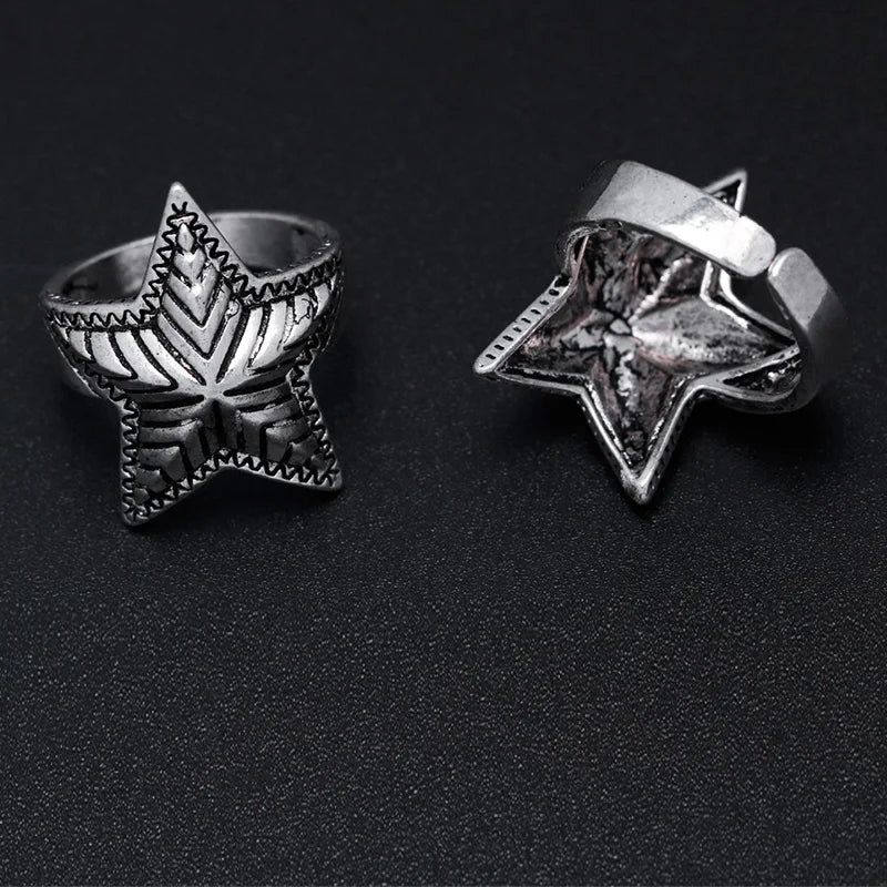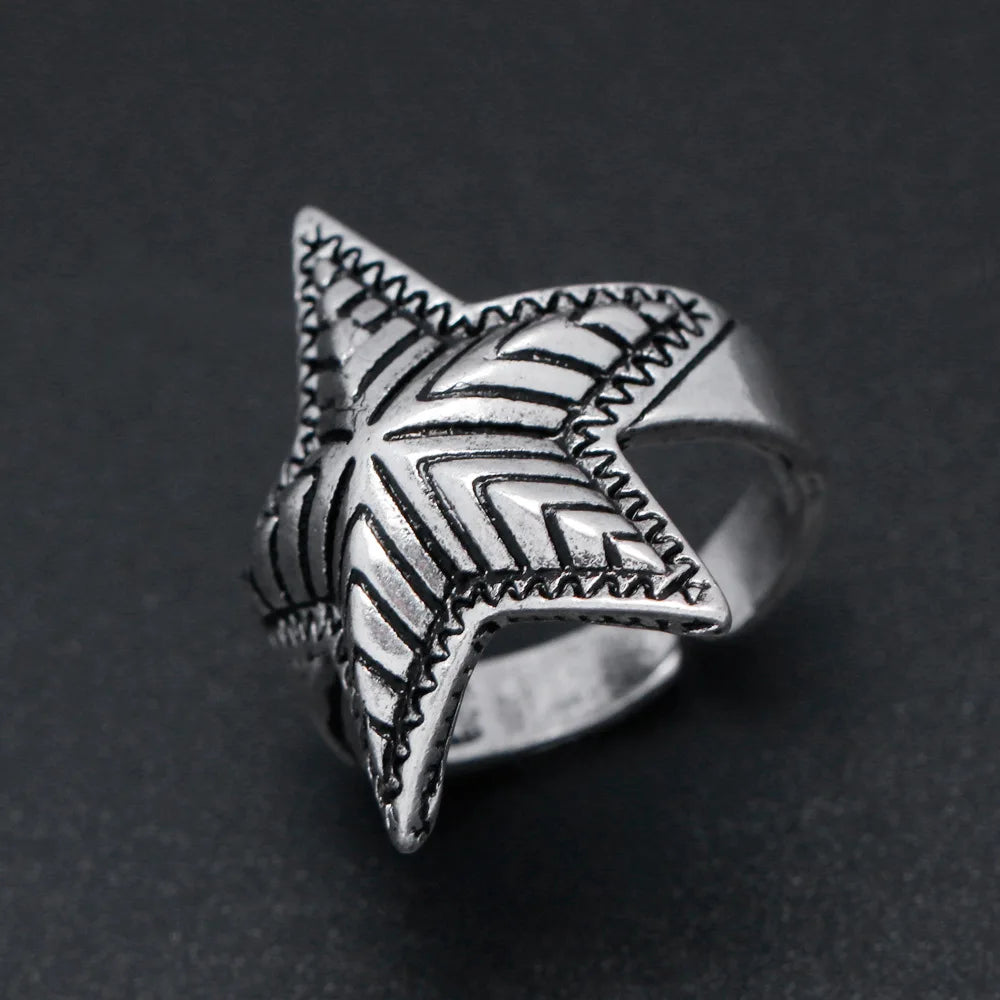 Embrace vintage rebellion with this audacious big star adjustable ring that refuses to play it safe. Constructed from durable zinc alloy, this retro-inspired piece channels nostalgic cool with a modern edge. The oversized star design makes an unapologetic statement, commanding respect on any finger. Its adjustable fit ensures a perfect grip for anyone bold enough to wear it, adapting to your unique style without compromise.