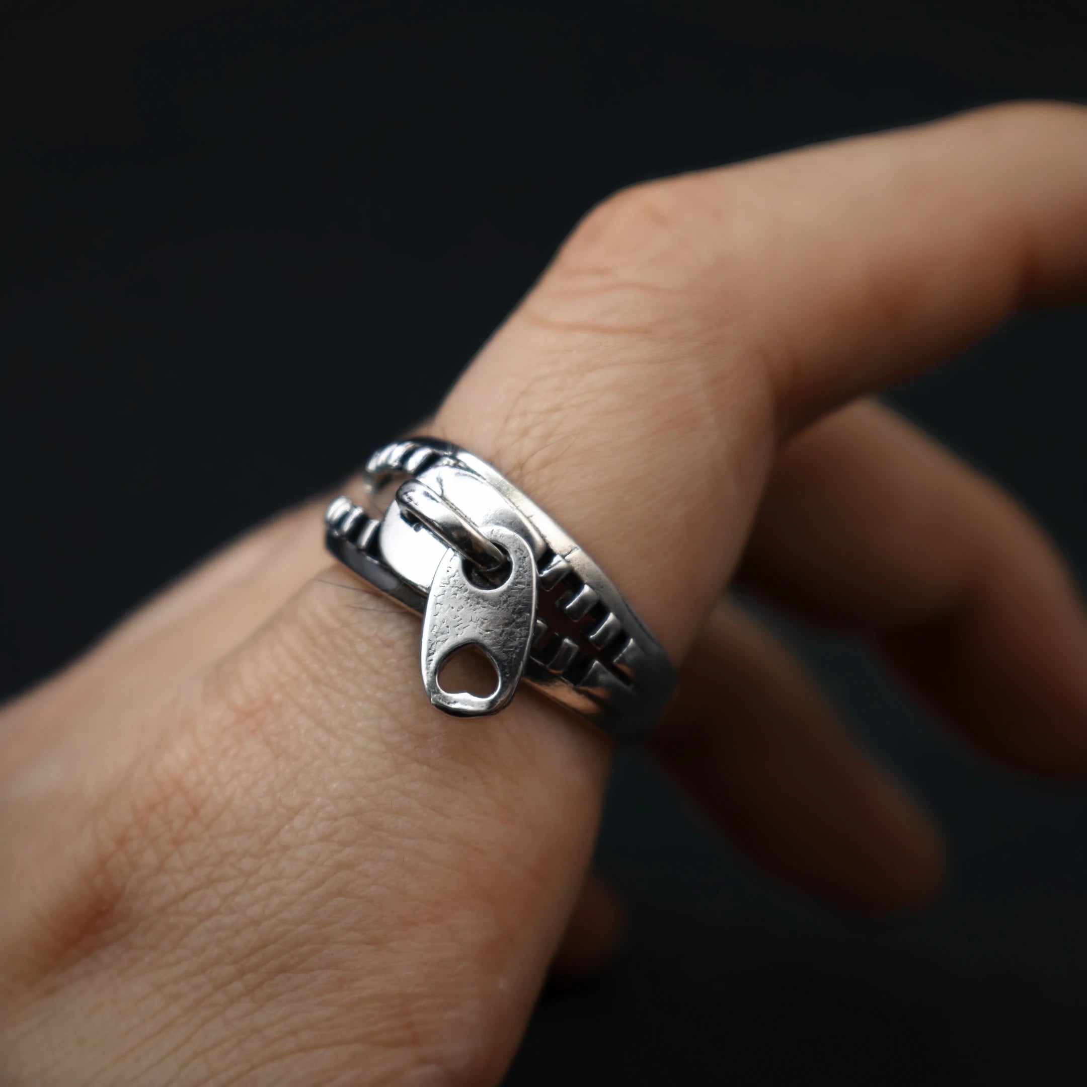 Retro Zip-Up Zipper Open Ring