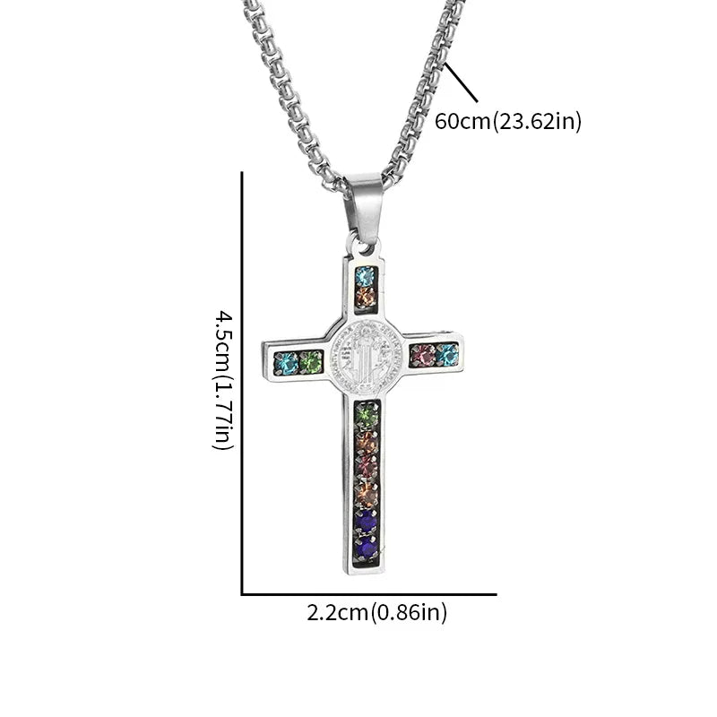 Colorful Rhinestone Cross Stainless Steel Necklace