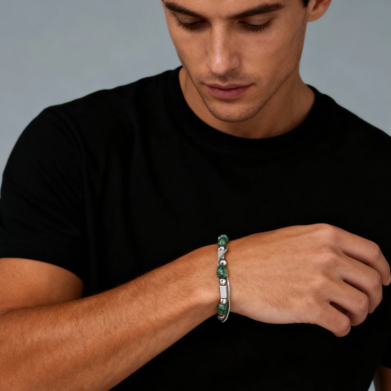 Green Natural Stacked Steel Bracelet
