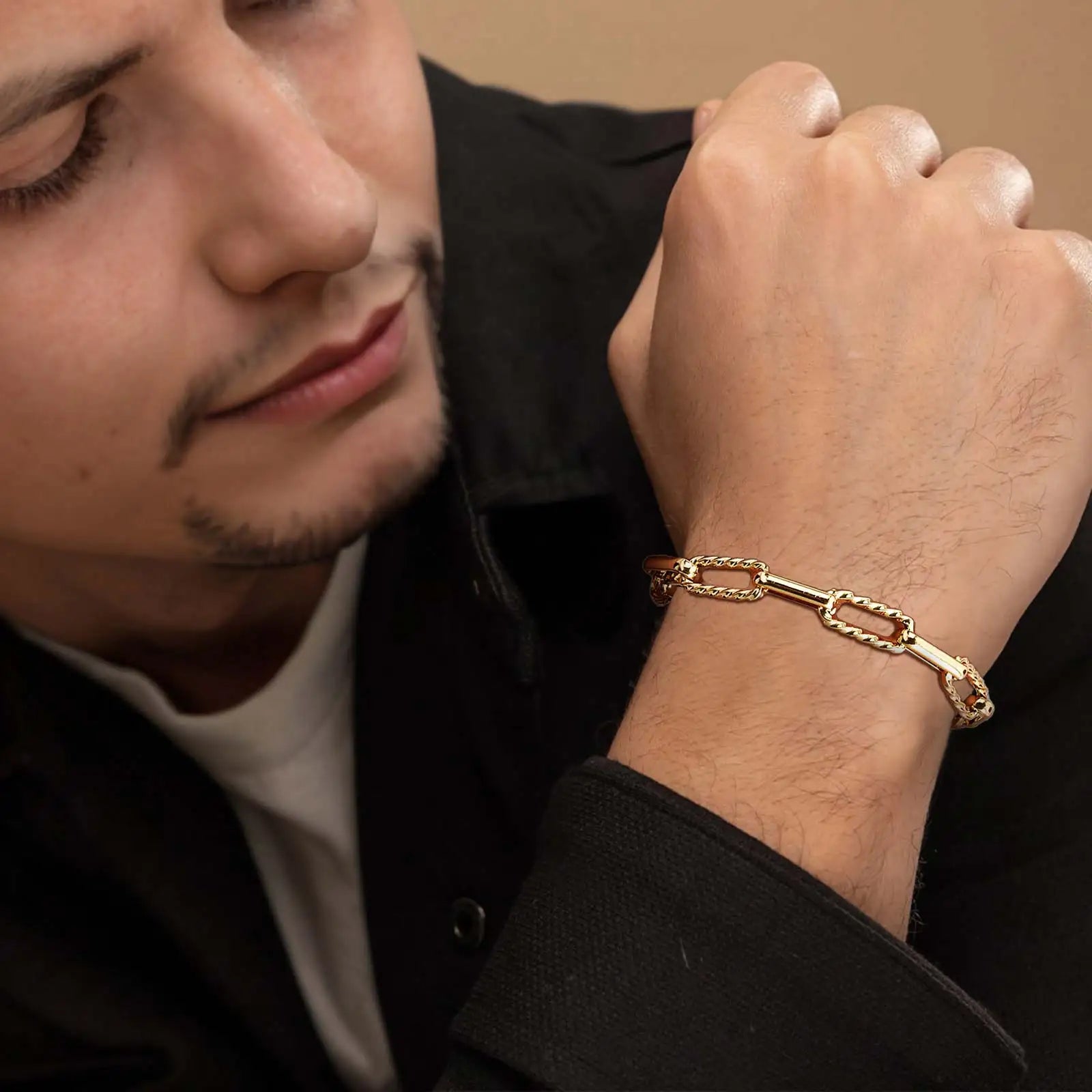 Unleash your edge with this bold rectangular stainless steel chain bracelet. Crafted from premium stainless steel, this striking link design commands attention with its geometric precision and rebellious aesthetic. Built to withstand your lifestyle, it resists tarnishing and corrosion while maintaining its lustrous finish. Layer it fearlessly or wear it solo—this is the statement piece for those who refuse to blend in.