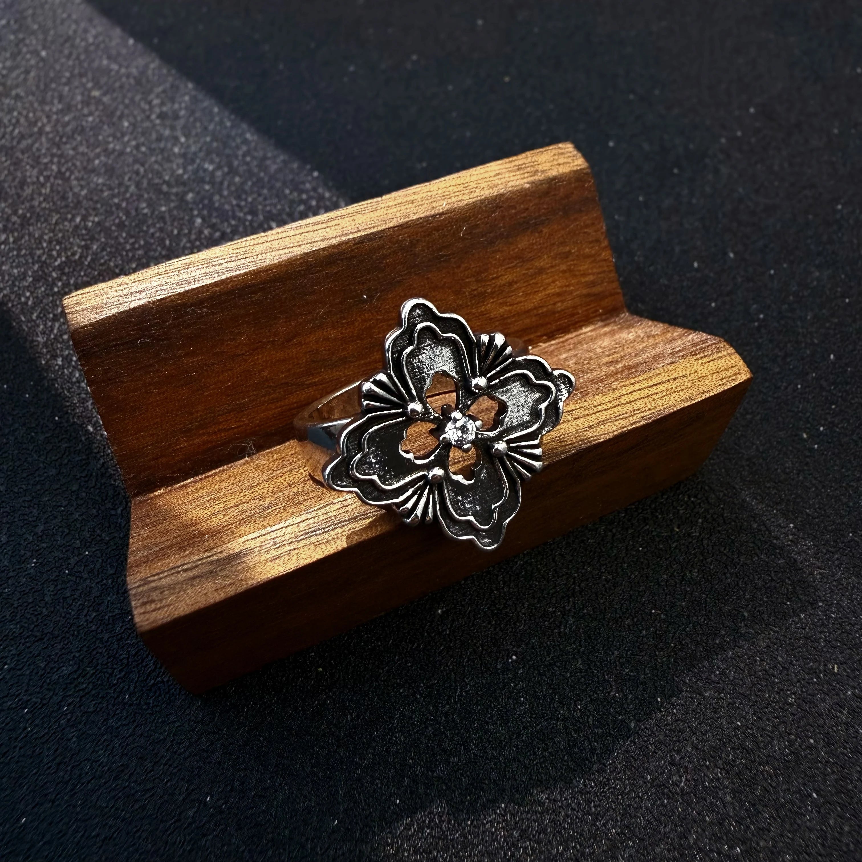 Retro Lucky Four-Leaf Clover Open Ring