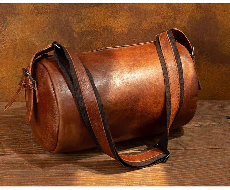 Brown Leather Big Barrel Bag