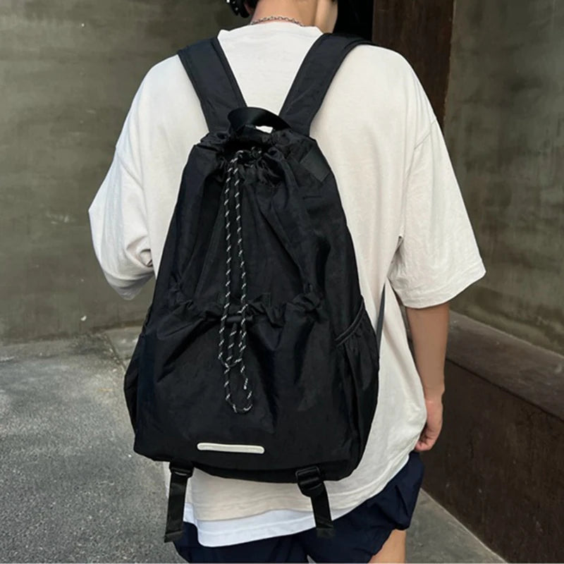 Sling it, cinch it, own it—the Drawstring Solid Nylon Backpack is built for those who move with purpose. Engineered from tough nylon with a polyester-lined interior, this stripped-down essential delivers no-nonsense functionality wrapped in understated swagger. The drawstring closure keeps your world secure while maintaining that effortless, ready-for-anything aesthetic.