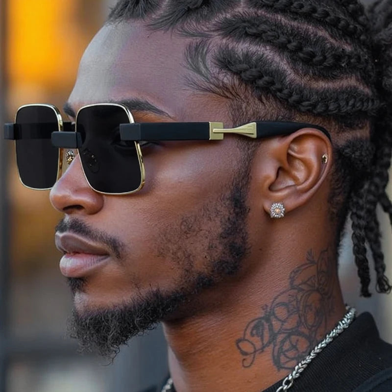 Bold geometric frames meet industrial edge with these steampunk-inspired square sunglasses. Oversized lenses deliver maximum coverage and UV protection, while the structured design channels vintage-futuristic style. Perfect for making a statement whether you're exploring urban landscapes or standing out at any occasion.