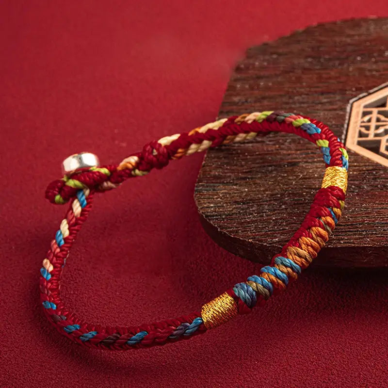 Our product, the Colorful Thread Bracelet, is made with high-quality cotton material and comes in a charm bracelet style.