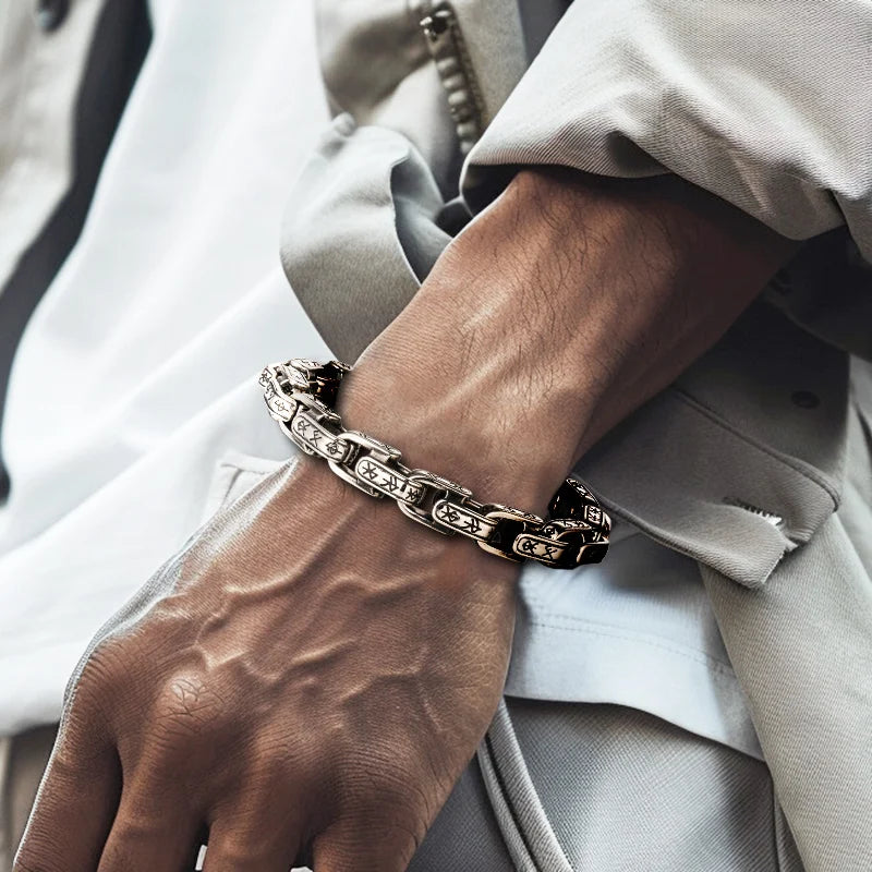 Unleash your inner rebel with this bold stainless steel link chain bracelet that channels vintage edge. Crafted from durable stainless steel, this retro-inspired piece features interlocking links that make a statement without apology. Perfect for those who refuse to blend in, it pairs effortlessly with any look—from leather jackets to minimalist fits. Timeless enough to wear forever, daring enough to turn heads.