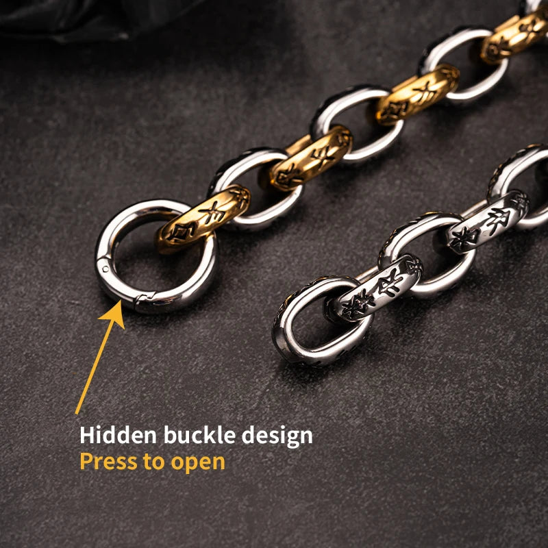 Command respect with every wrist movement. This bold chain bracelet features substantial links in a striking silver-gold combination that refuses to whisper—it roars. Constructed from premium stainless steel, it's engineered for durability without sacrificing that unmistakable edge. Whether you're stacking it with other pieces or letting it stand alone as your statement, this bracelet announces that you're not here to follow trends, you're here to set them. Fearless. Unbreakable. Unforgettable.