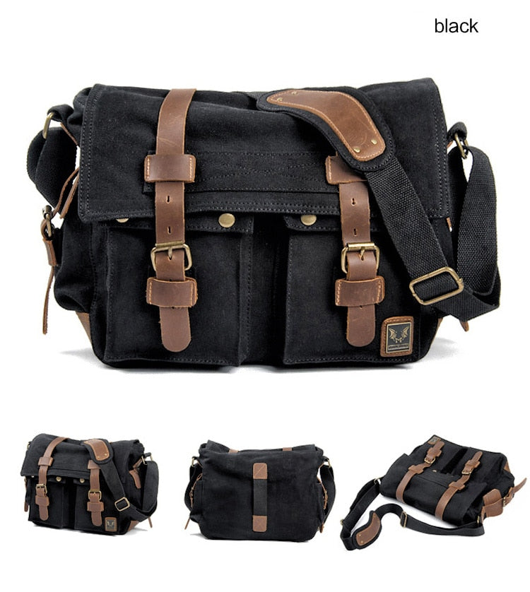 This stylish men's bag is an excellent choice for modern looks and casual settings. The durable canvas material is casual and versatile and can be used for many outfits. The spacious main compartment is great for carrying books, school and work supplies, and plenty of other items. This bag will go with just about any look, from casual to formal and everything in between.