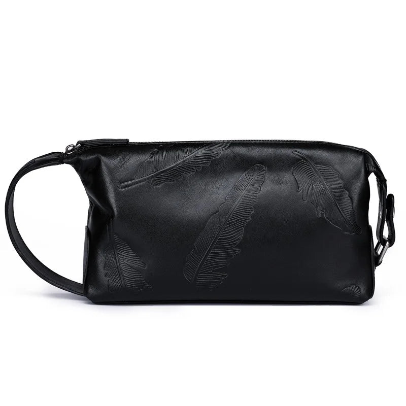 Crafted from genuine leather with a striking leaves embossing, this clutch bag commands attention. Its polyester lining ensures durability while keeping your essentials secure. Perfect for those who dare to stand out, this accessory blends bold design with lasting quality.