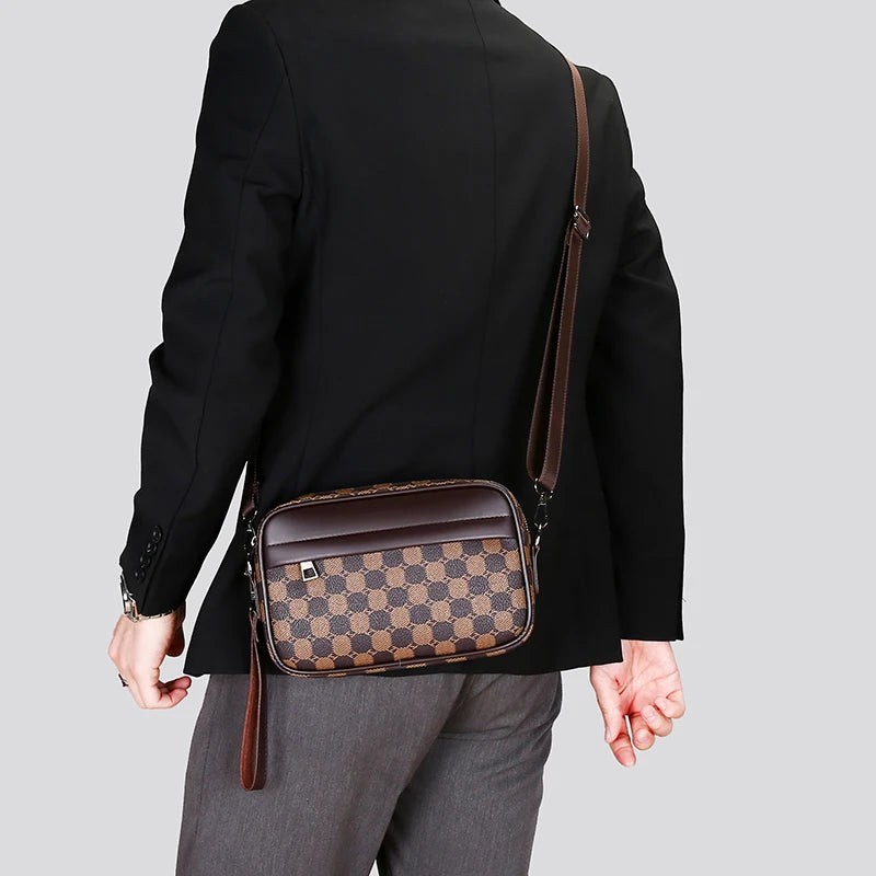 Crafted from durable PU leather with a bold geometric pattern, this men's bag combines edgy style with practical design. Featuring secure zipper pockets, it keeps your essentials organized and accessible while making a confident statement wherever you go. Perfect for those who dare to stand out.