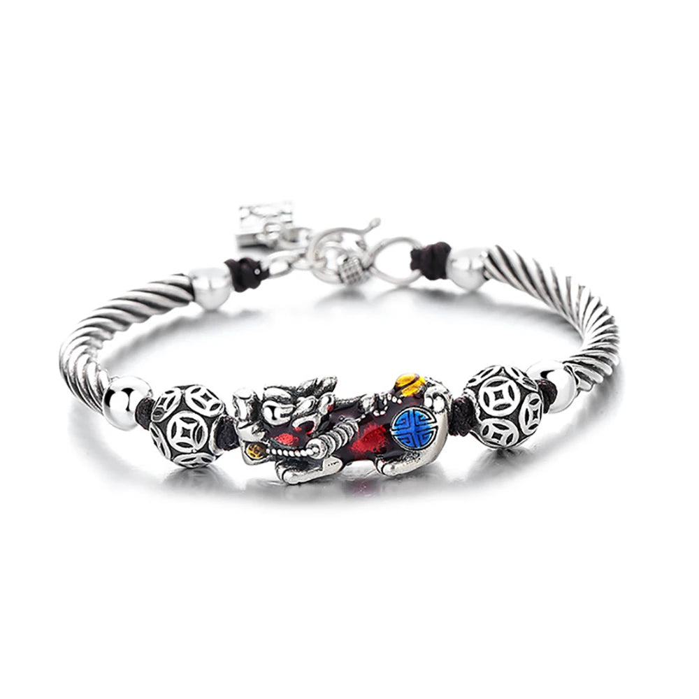 Made from premium 925 sterling silver, the Lucky Colorful Kylin Wrist Bead Bracelet combines vintage charm with bold, vibrant colors. This striking piece channels fearless energy and adds a powerful, eye-catching touch to your wrist, perfect for those who dare to stand out.