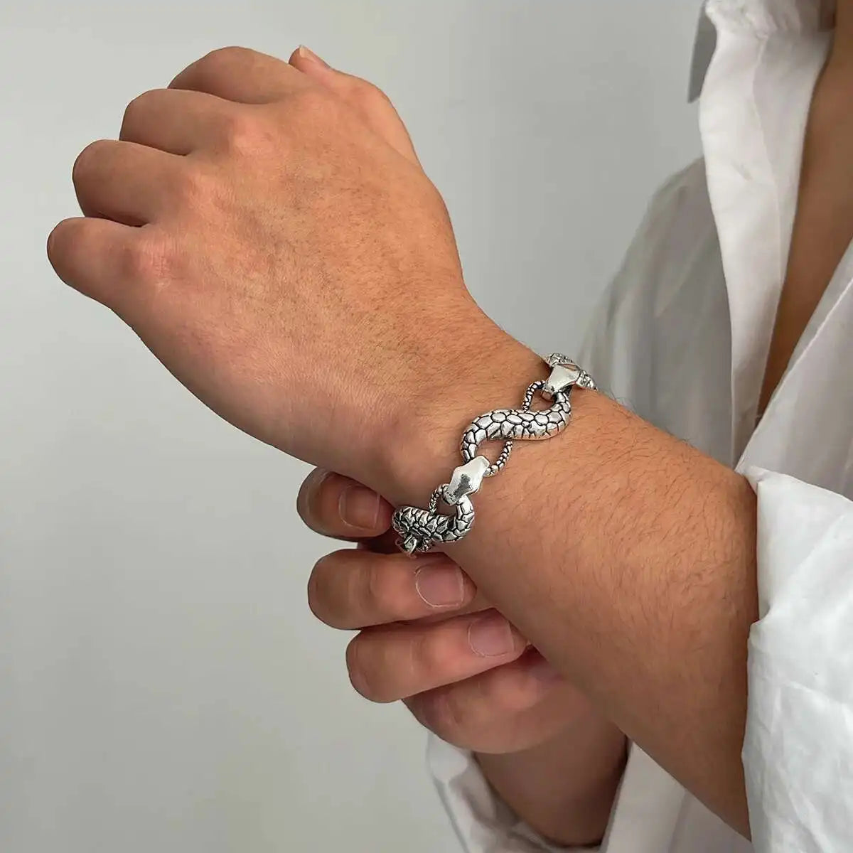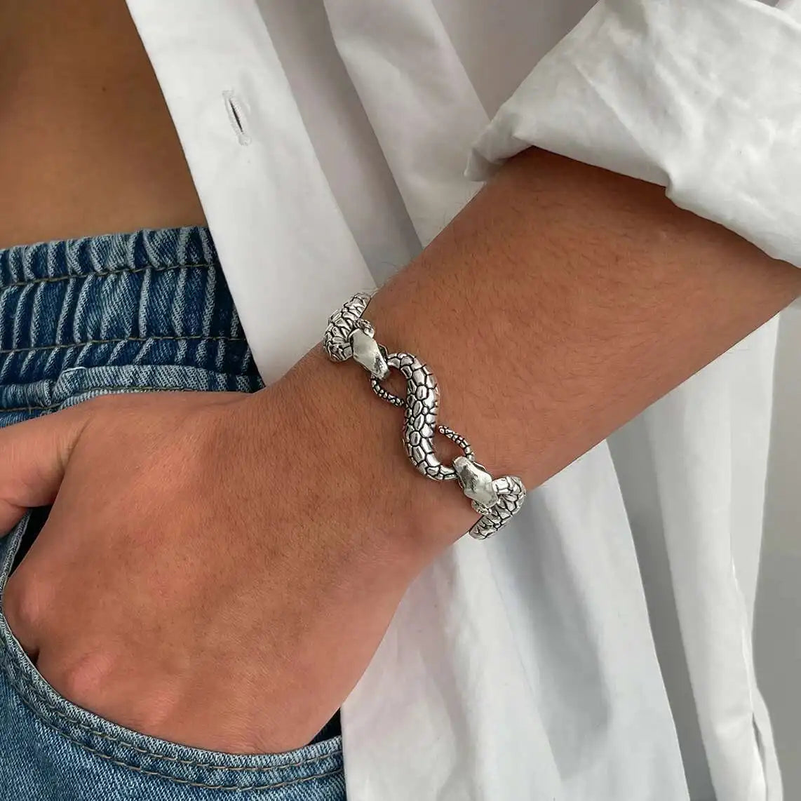 Elevate your style with the Serpent Lock Chain Bracelet, crafted from durable zinc alloy for a bold, edgy look. Its striking serpent-inspired lock design adds a fearless touch to any outfit, making it the perfect statement piece for those who dare to stand out.