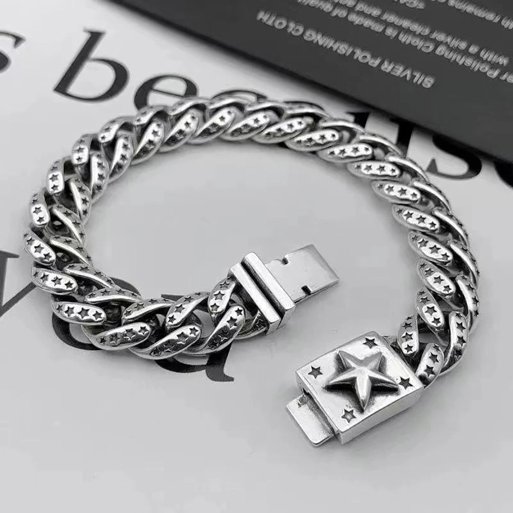 Elevate your style with this daring Star Chain Style Square Box Bracelet crafted from lustrous 925 sterling silver. Its bold geometric design commands attention, making it the perfect statement piece to showcase your fearless fashion sense. Durable yet elegant, this bracelet adds an edgy sparkle to any outfit.