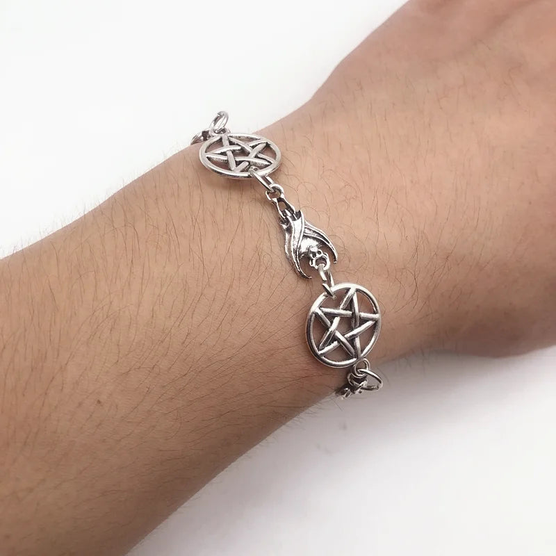 Sterling Silver Bone-Link Skull Charm Bracelet
