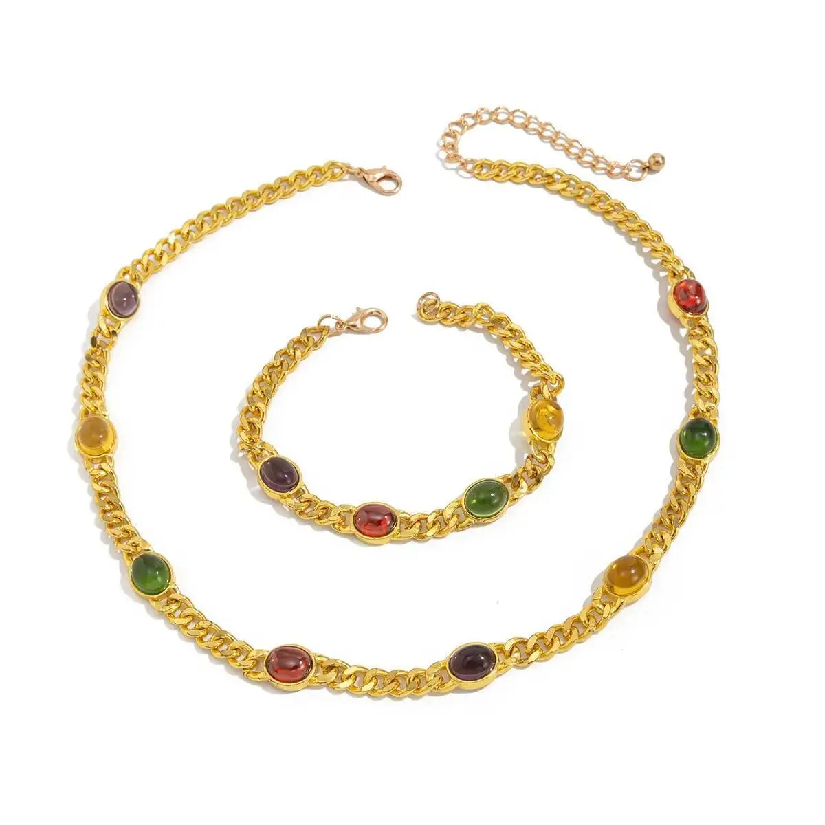 Elevate your edge with this bold geometric necklace and bracelet set. Crafted from iron alloy and acrylic, this daring duo features striking angular shapes that command attention. The gold-toned chain delivers a luxe finish while the geometric accents add contemporary flair. Perfect for those who refuse to blend in—stack them, layer them, or wear separately for maximum impact. Make a statement that's unmistakably yours.