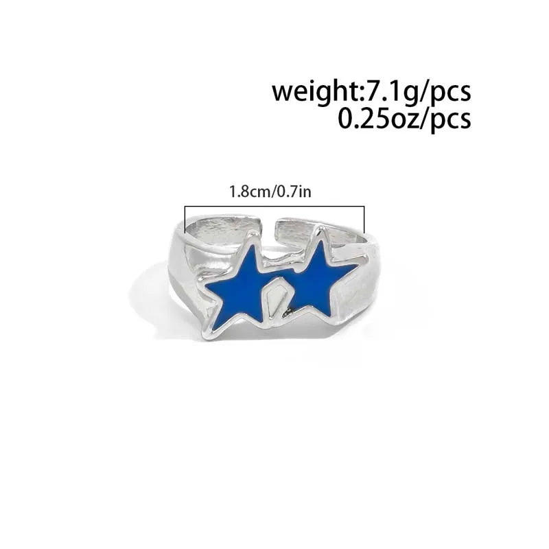 Unleash your bold side with this striking double star open ring. Crafted from durable zinc alloy, this fearless piece features a dynamic star design that commands attention. The open ring style offers edgy versatility—wear it stacked, layered, or solo for an instant attitude boost. Perfect for those who refuse to play it safe and demand jewelry that matches their fearless spirit.