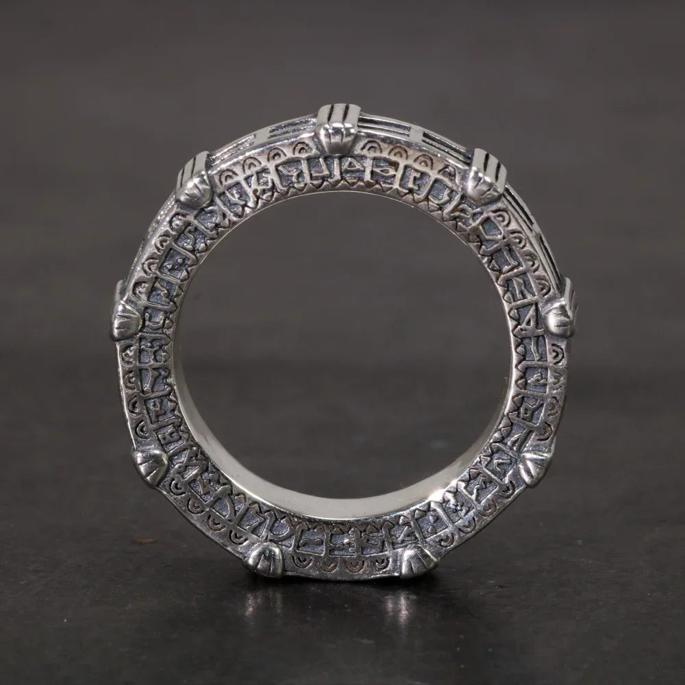 Round Retro Dark Sterling Silver Ring