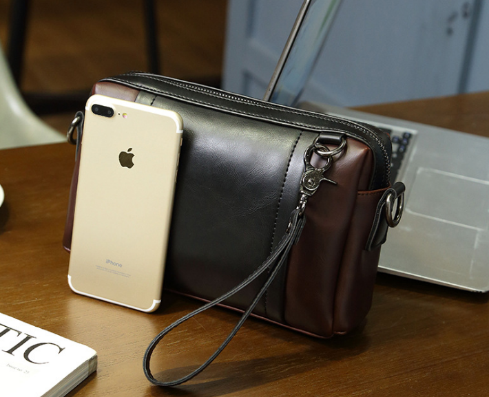 Bolso de embrague de cuero de PU sólido informal con cremallera múltiple