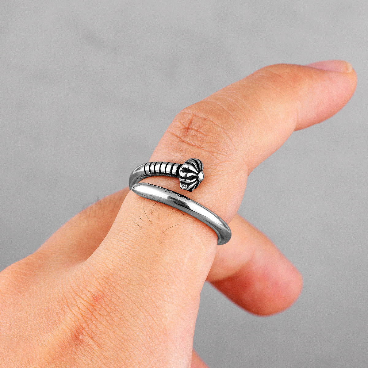 Cet anneau est en acier en titane et est réglable, ce qui en fait un ajustement parfait pour n'importe quel doigt. L'intérieur de l'anneau présente une ancienne lettre de la lettre, parfaite pour un homme avec un goût distingué.