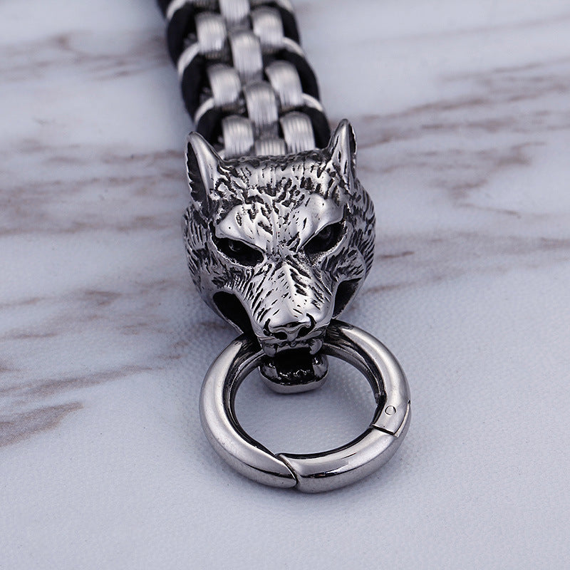 このメンズ ブレスレットは、どんな装いにもぴったりです。編組チェーンはチタン鋼でできており、一生使えるように設計されています。二匹のオオカミの頭のデザインは、男性の注意を引く最後の仕上げです。また、軽量で快適です。