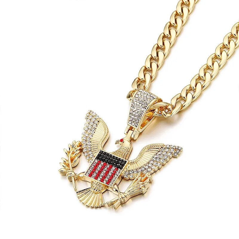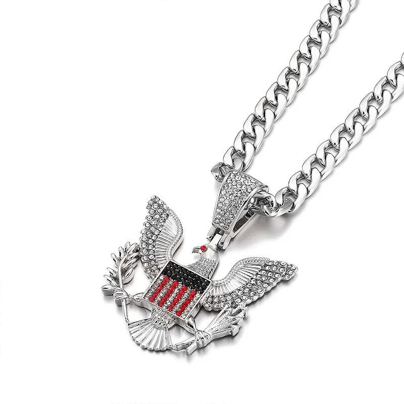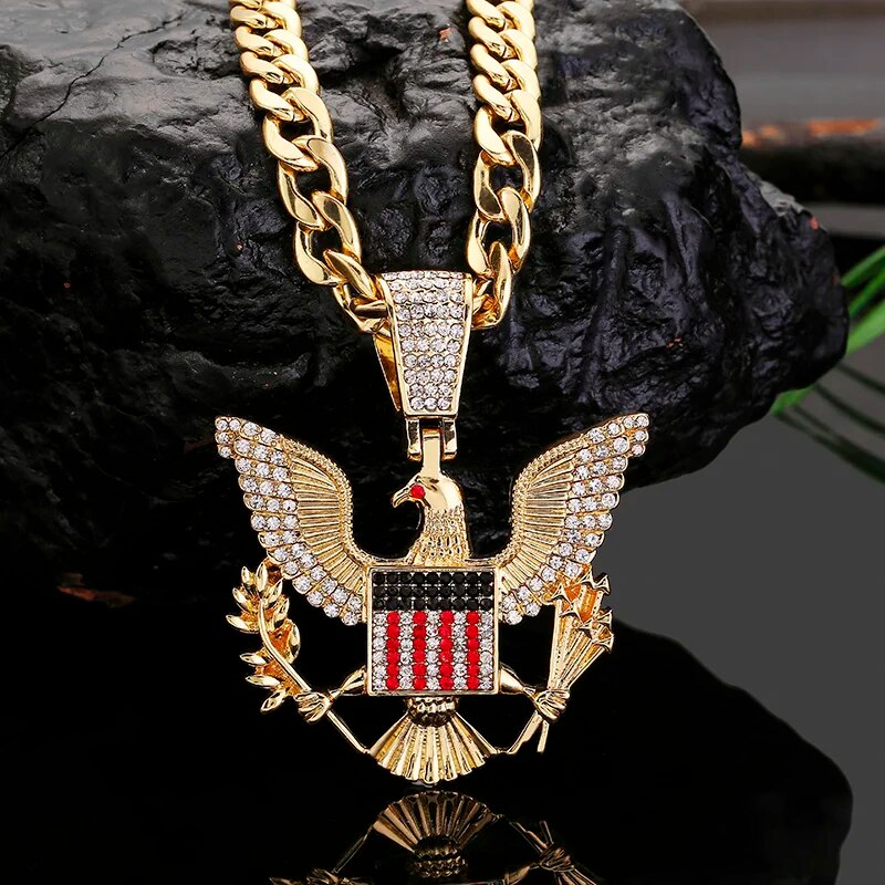 This Bold Eagle Badge Rhinestone Pendant is the perfect accessory for any hip-hop or rock fan. Its image of a proud eagle is crafted out of zinc alloy and encrusted with rhinestones. Get noticed with this fashionable pendant.