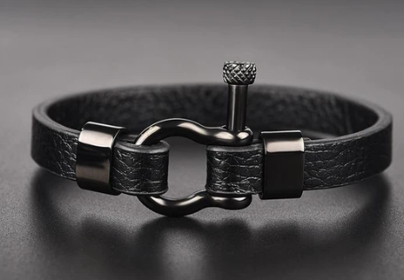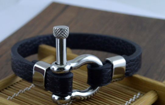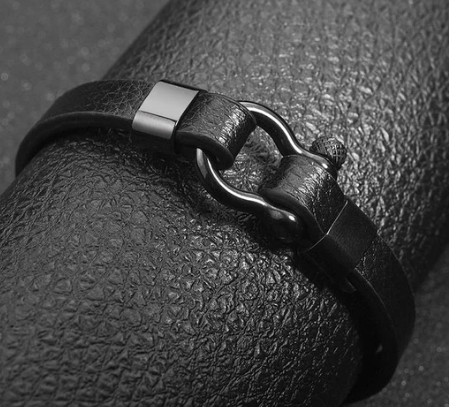 This casual metal bracelet has a simple look that will complement a wide variety of outfits. The leather strap with a buckle closure is a fun and stylish alternative to a plain silver chain. Easy to move around with, this everyday accessory is a great way to add a hint of charm to any look. This leather bracelet has a great look that will easily match a variety of accessories. In addition, it's an ideal step up from a plain silver chain. This leather bracelet is a great way to add a hint of charm to any look.