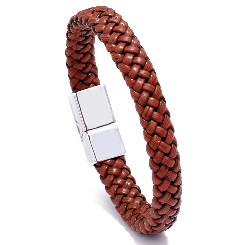 When you want to express your personal style, you'll need a simple bracelet. This bracelet is made of woven leather material and has a simple design. The bracelet has an alloy buckle that gives it a nice touch. It's the perfect piece to complete your outfit.