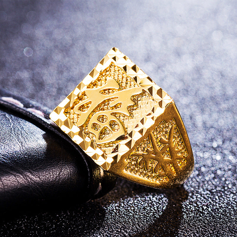 This Chinese Letter Graving Adjustable Ring is perfect for everyday wear. It is made of copper with a unique Chinese letter graving, adjustable for a secure fit. It's an eye-catching piece with a unique look that adds a touch of personality to any outfit.