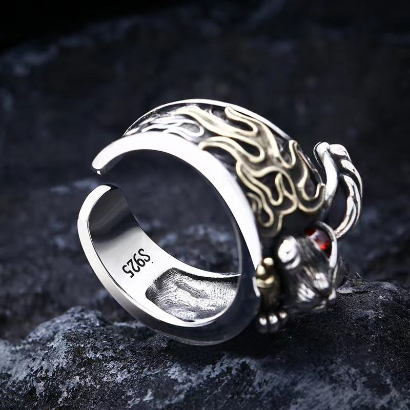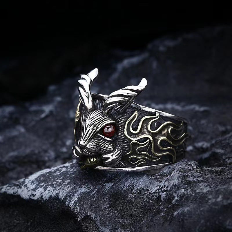 Gothic Rabbit Adjustable Sterling Silver Ring