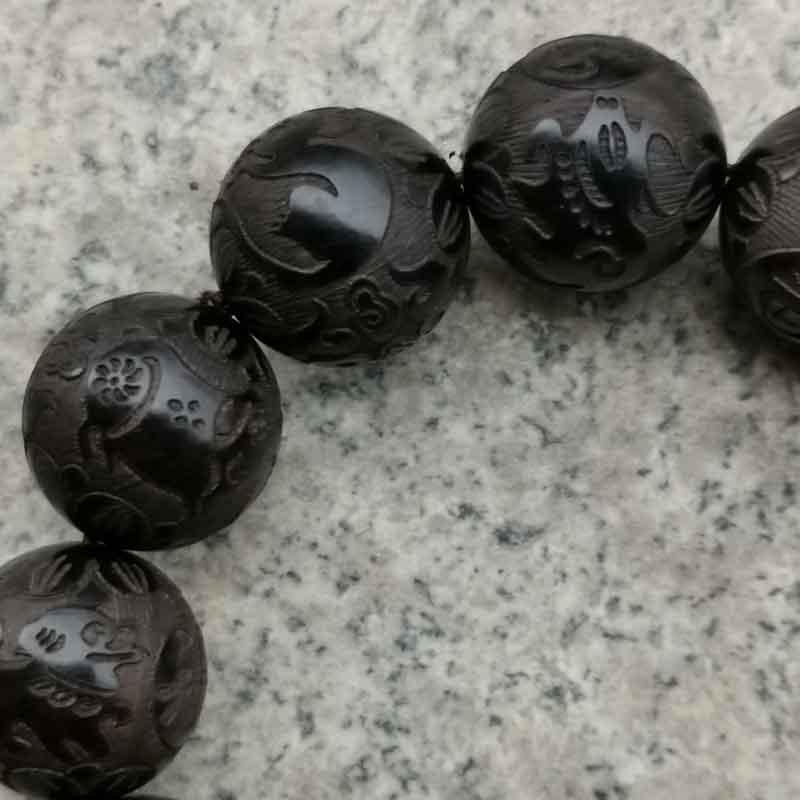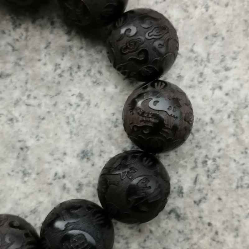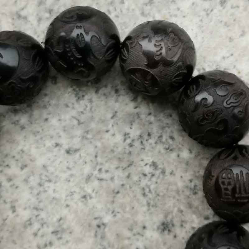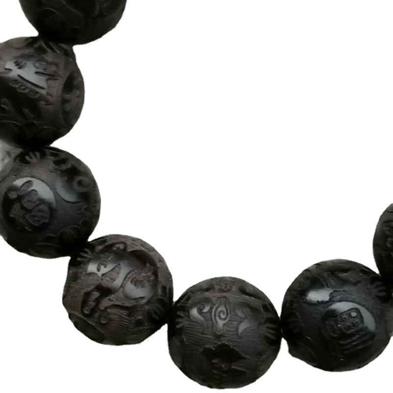 The bracelet is designed as a beads bracelet, which is a timeless and versatile style that can be worn with any outfit. The black beads give this bracelet a classic and sophisticated look, while the intricate carving decoration adds depth and texture to the overall design.