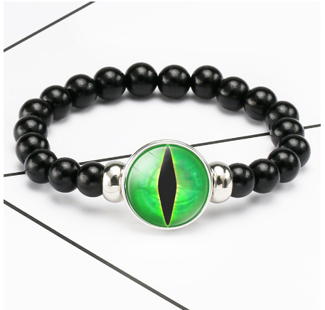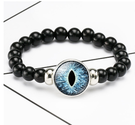 This bracelet has a unique dragon eye amulet. Lightweight and easy to wear, this bracelet is a great accessory for all-day wear. The beads are made of resin, which is super durable.