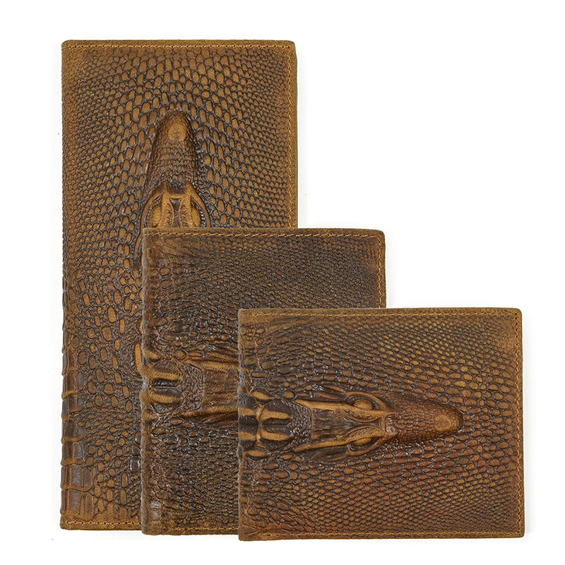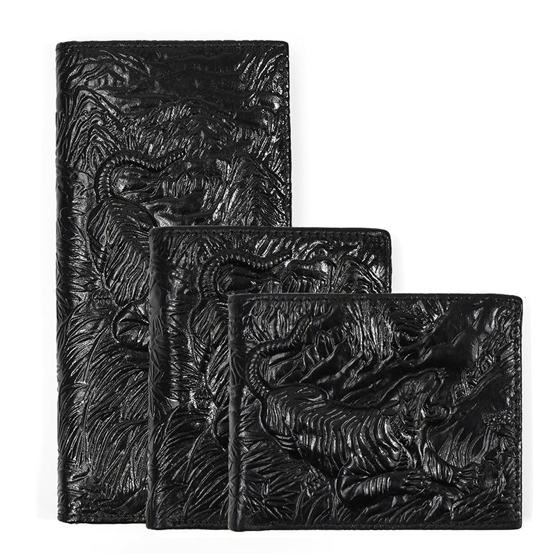 A stylish and practical wallet that goes with pretty much anything. This embossed leather wallet is designed with a casual yet sophisticated look that looks great with a suit or a pair of jeans. It keeps your essentials safe and secure with a secure snap closure that won't let them fall out. The soft and supple leather is durable and long-lasting as it ages. A must-have accessory for every man's wallet.