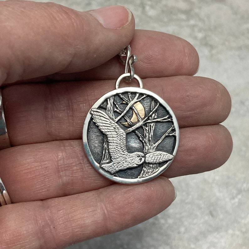 Celebrate the unique beauty of the night sky with this unique pendant. This pendant is perfect for those who admire the beauty of the moon and nature. The pendant is made out of alloy.