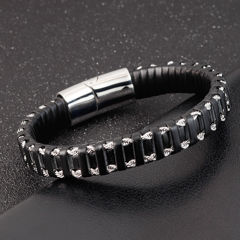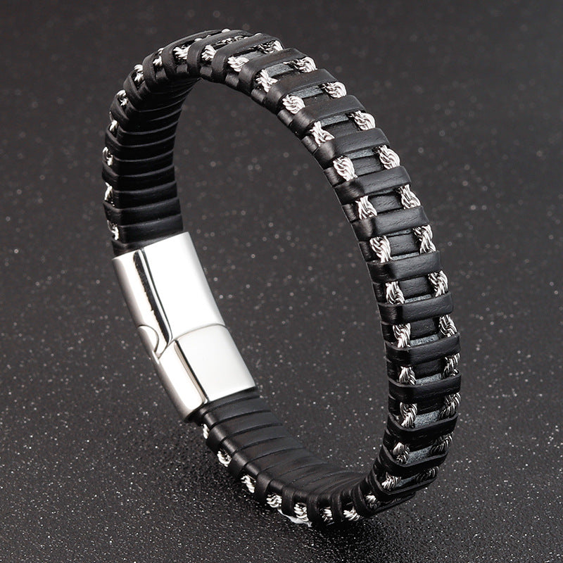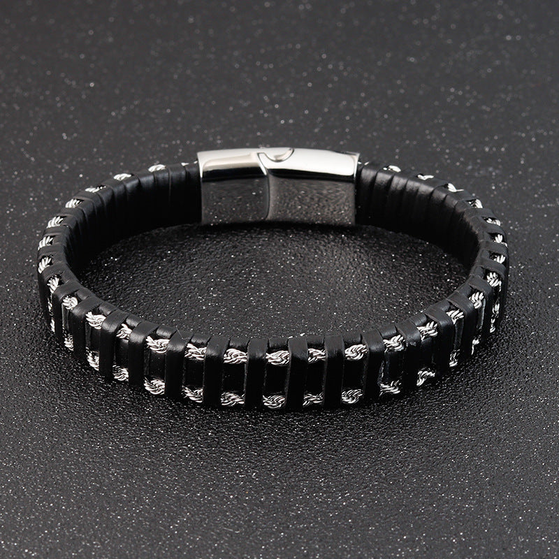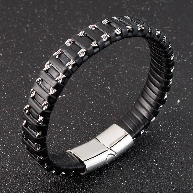 Hand Woven Titanium Steel Chain Leather Bracelet