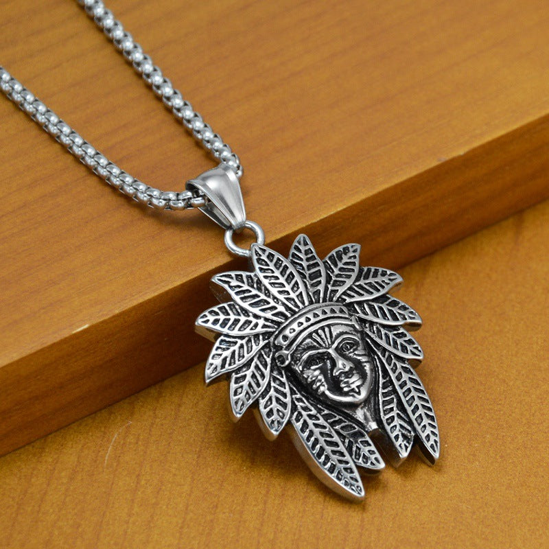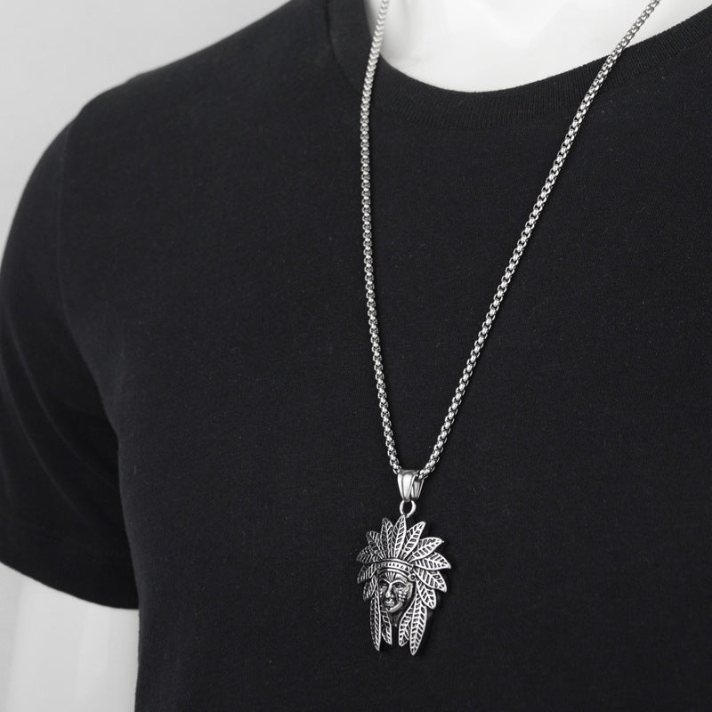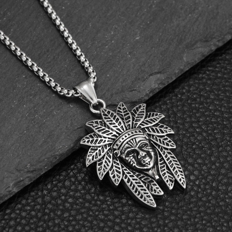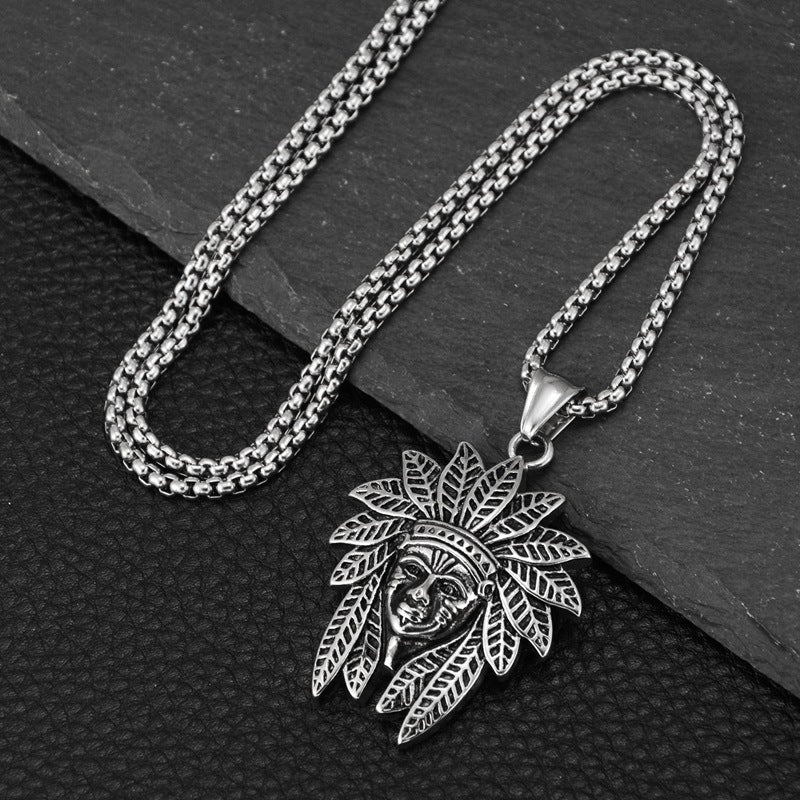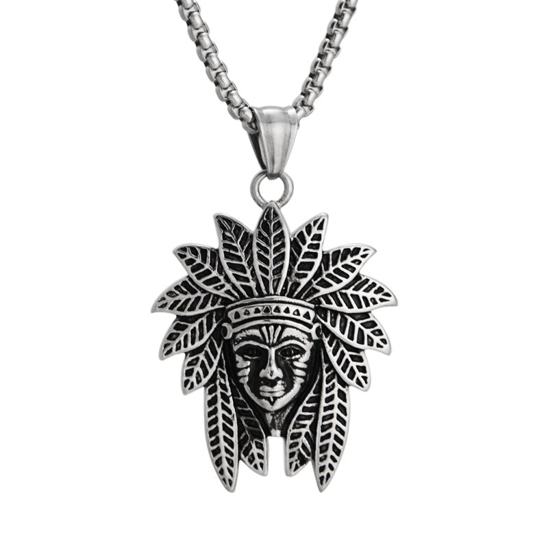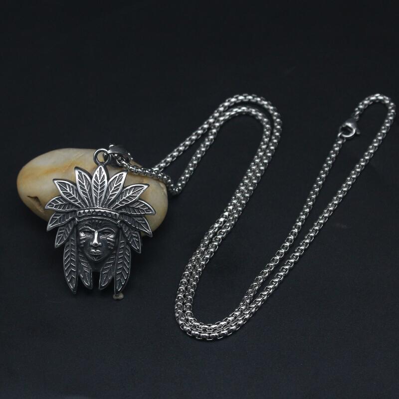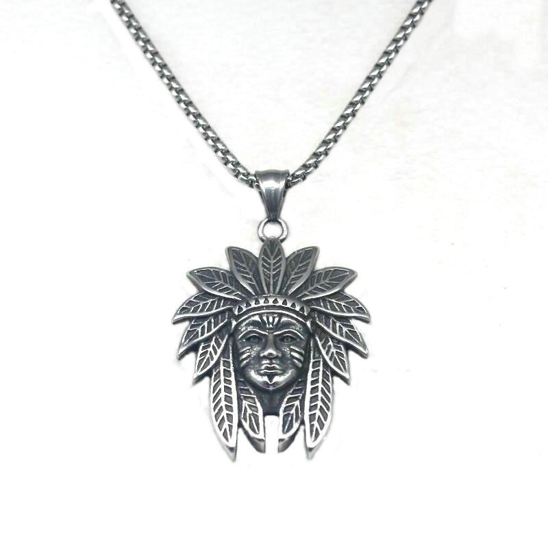 This Indian head necklace is a great gift for any occasion. This necklace is made from titanium steel and has a 70 cm long chain. The Indian head pendant has a nice size, not too big and not too small. The Indian head design is also very detailed and looks great.
