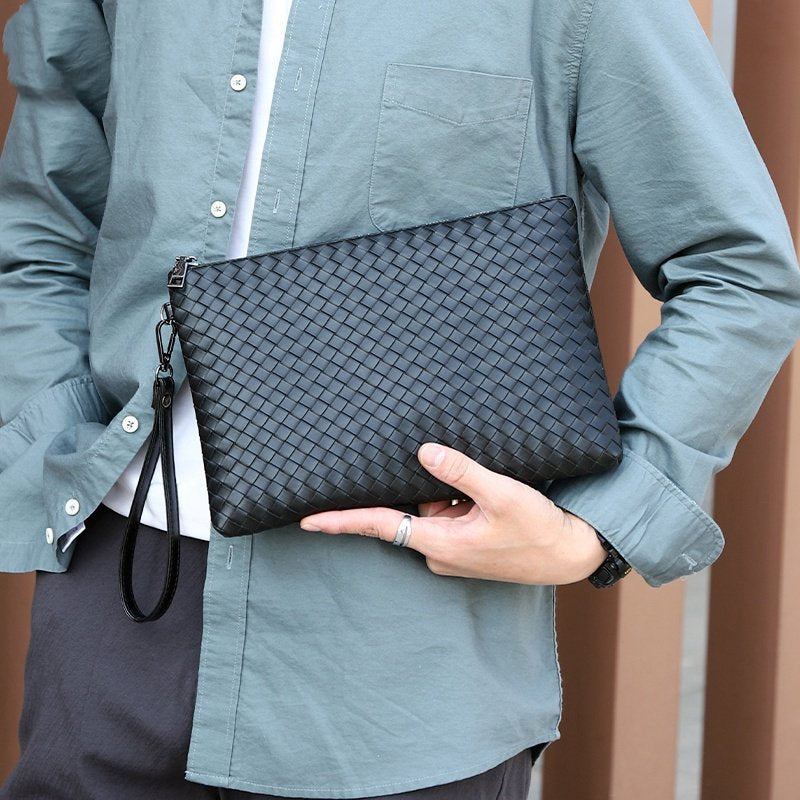 This fabulous clutch bag is a great way to complement any wardrobe. The bold woven pattern is a great choice for everyday wear. Made from premium PU leather, this piece will age beautifully and provide for years of use. The inside features a zippered pocket for quick and easy access. The clutch design ensures that this accessory is always within reach.