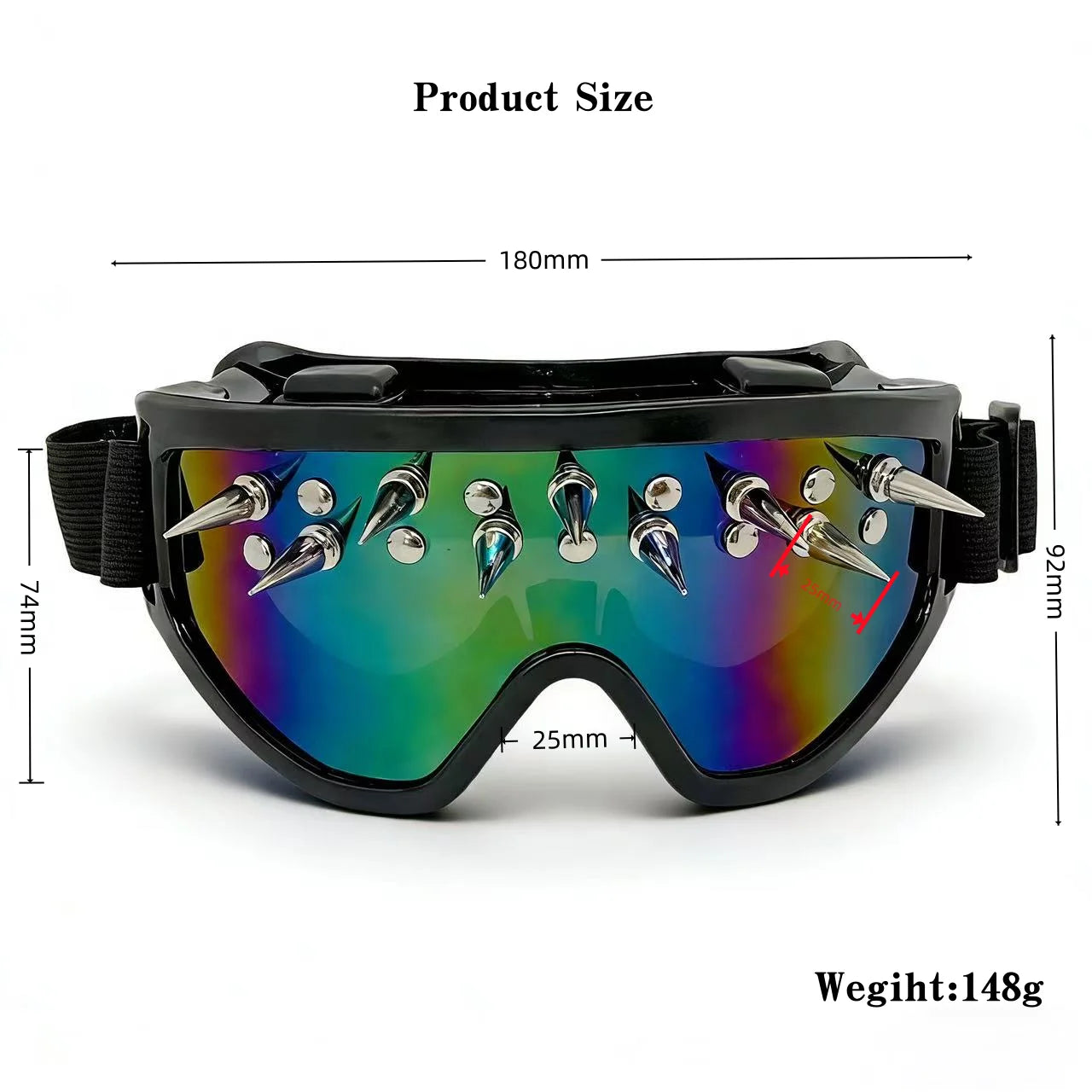 Unleash your rebellious side with these striking Punk Spike Motorcycle Goggles Sunglasses. Featuring bold metallic spikes and an edgy design, these shades deliver maximum attitude for riders and style enthusiasts alike. The dark lenses provide reliable UV protection and glare reduction, whether you're cruising the open road or making a statement on the street. Perfect for motorcycle enthusiasts, festival-goers, and anyone embracing their punk aesthetic.