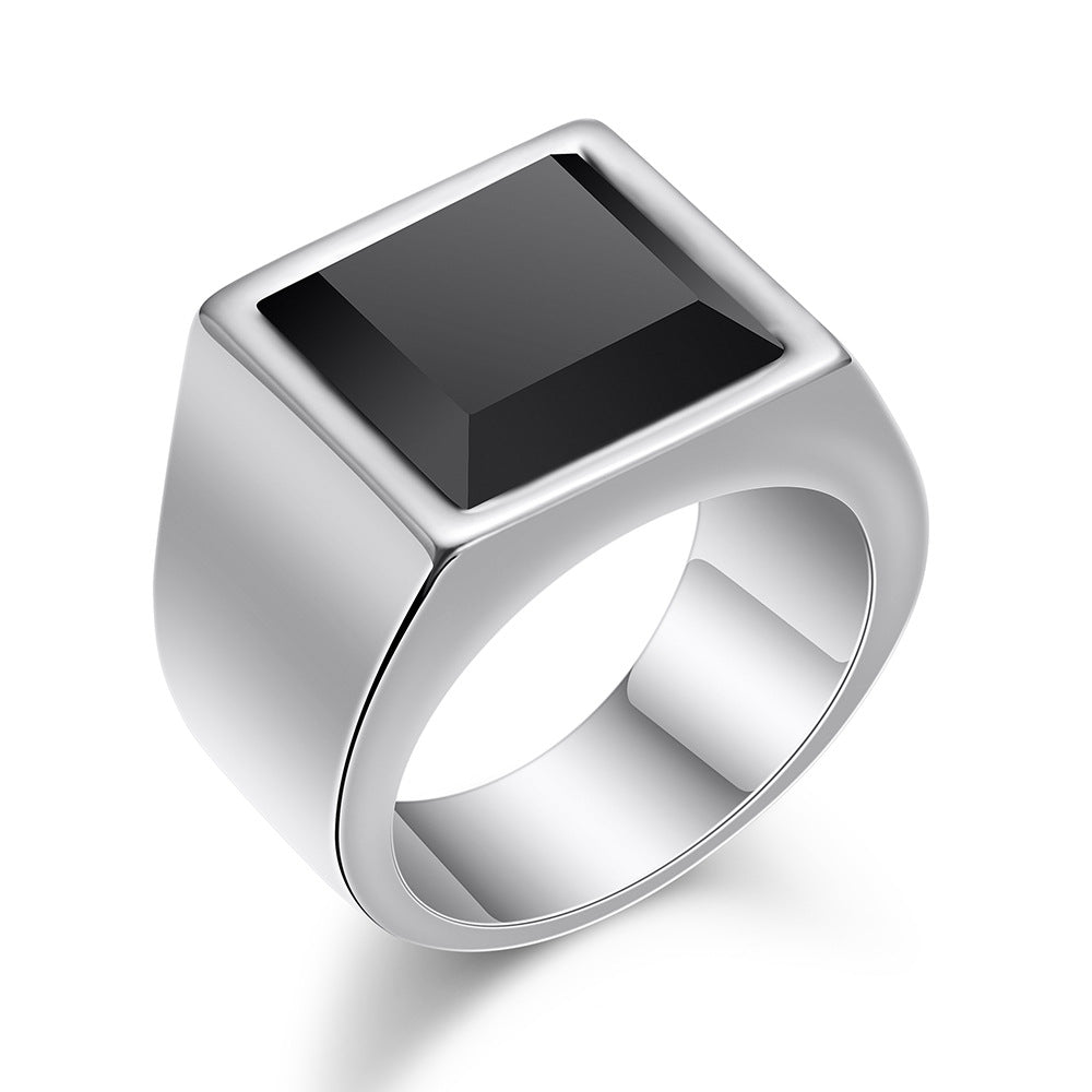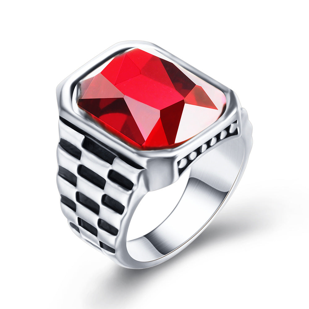 Retro Gemstone Men's Titanium Steel Ring