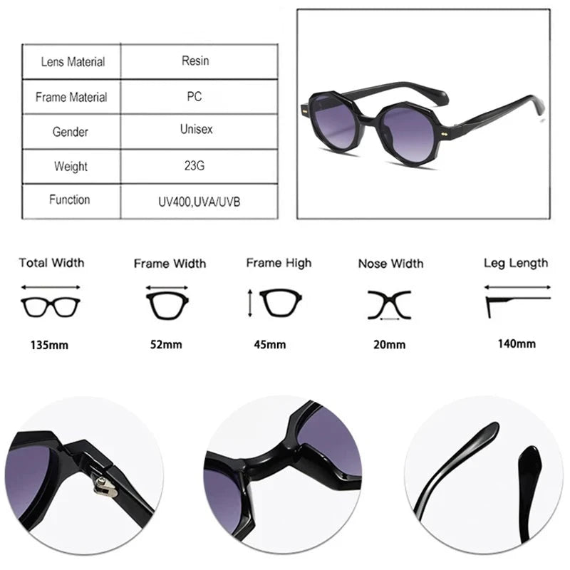 Introducing our Retro Irregular Oval Anti-UV400 Sunglasses, featuring a durable polycarbonate frame and resin lenses with gradient and anti UV-400 attributes. Protect your eyes with style and keep them safe from harmful UV rays. Perfect for any occasion.