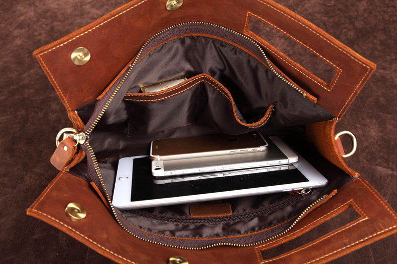The internal structure of the bag: zipper pocket, mobile phone pocket, document pocket