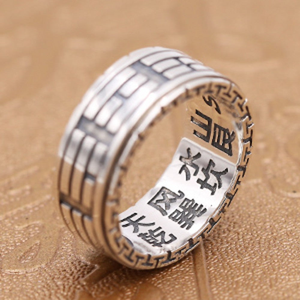 Retro Yin-Yang Graving Inside Sterling Silver Ring