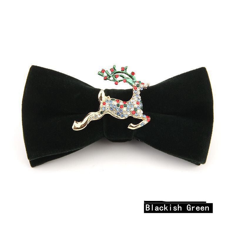 Christmas Rhinestone Alloy Deer Velvet Bow Tie