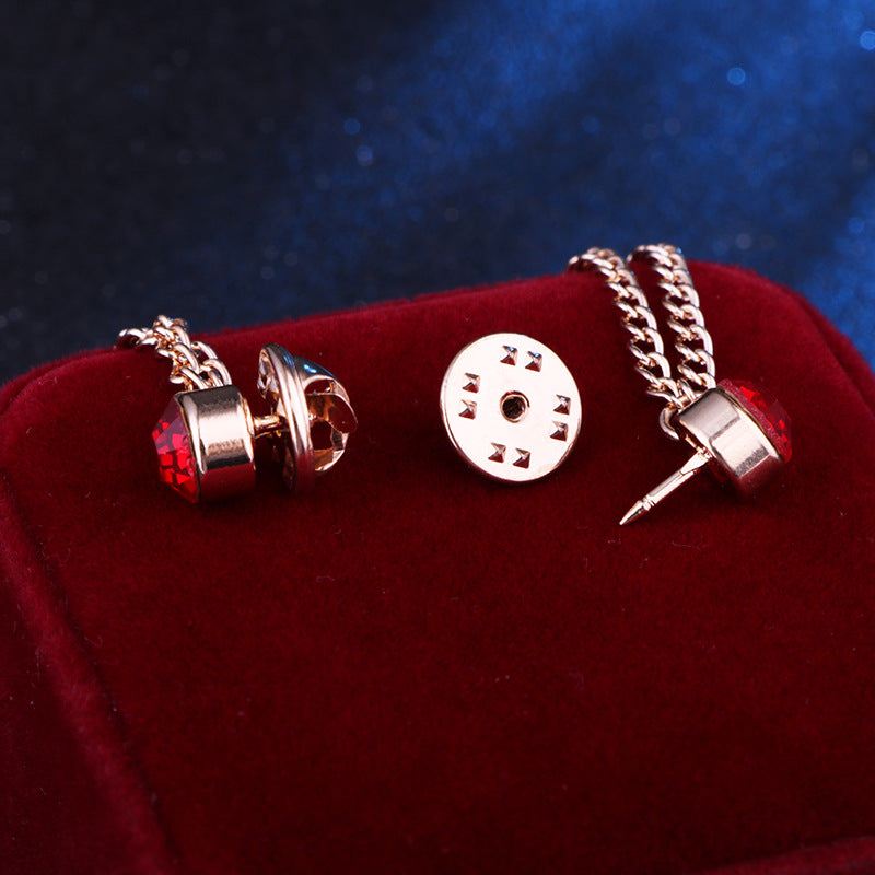 This brooch is a beautiful piece of jewelry that you can wear on a special occasion. It is made from alloy material. It has rhinestone decorations on the edge of the brooch.