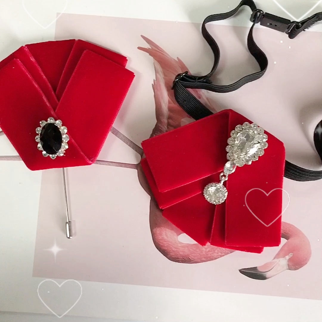 Rhinestone Decoration Velvet Multi-Layer Square Tie