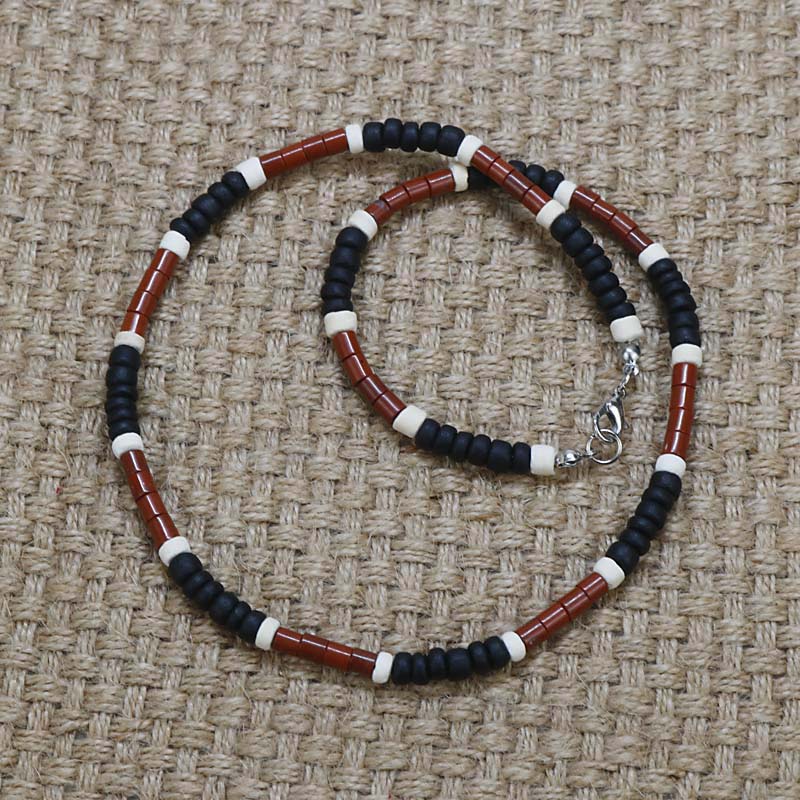 This spectacular necklace blends the magnificent look of stones with the traditional beauty of the Samoan stone. The red stone adds a splash of color to this beautiful, wearable necklace. You can wear it with anything from jeans to a formal dress. This necklace is a great piece to have with you at all times. It's a stylish, versatile piece that is perfect for everyday wear.