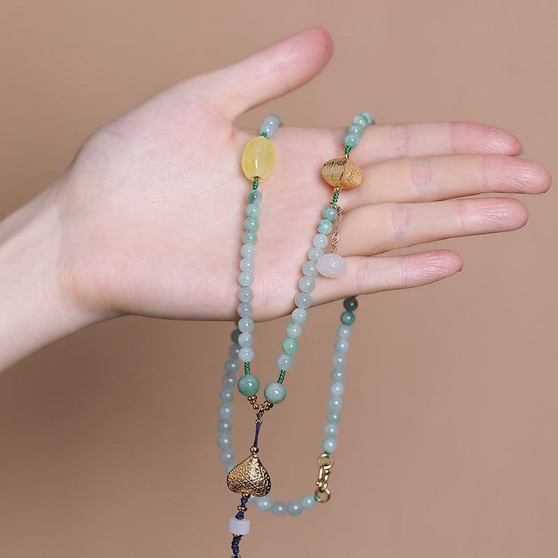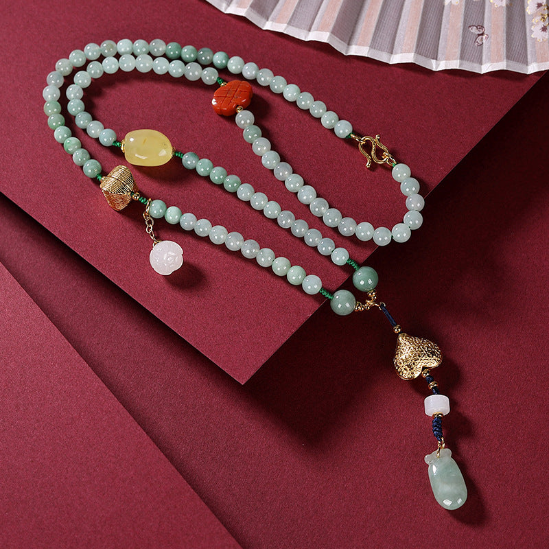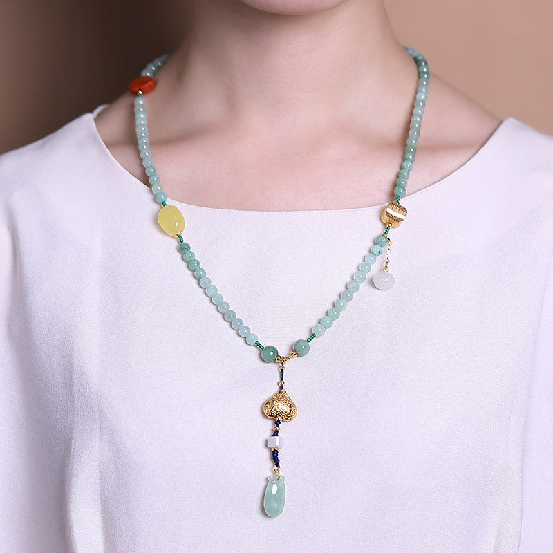 Silver Natural Hetian Yunan Lotus Necklace